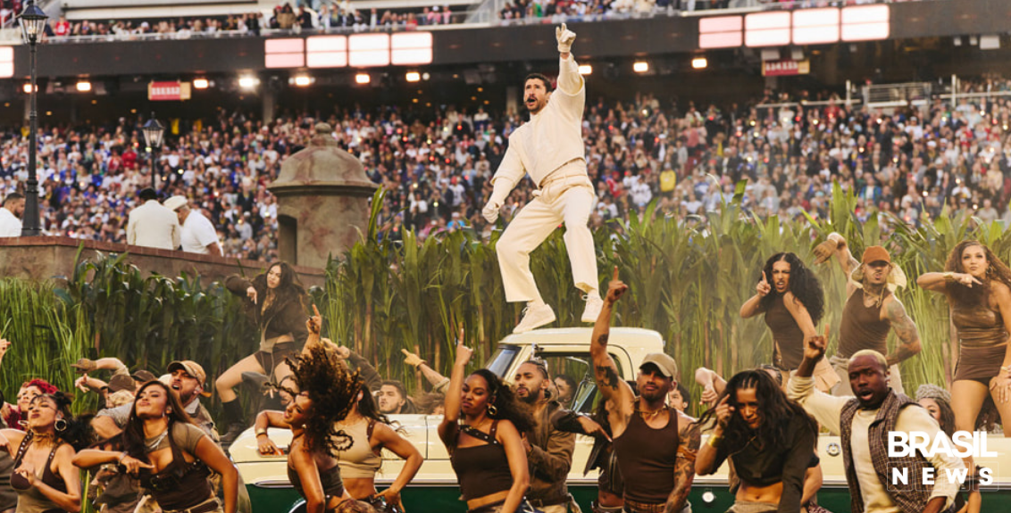 O show aconteceu poucos dias após o cantor conquistar o Grammy de Álbum do Ano e incluiu referências simbólicas à sua trajetória e à cultura latina, com elementos narrativos que foram interpretados de forma equivocada por parte do público nas redes sociais.