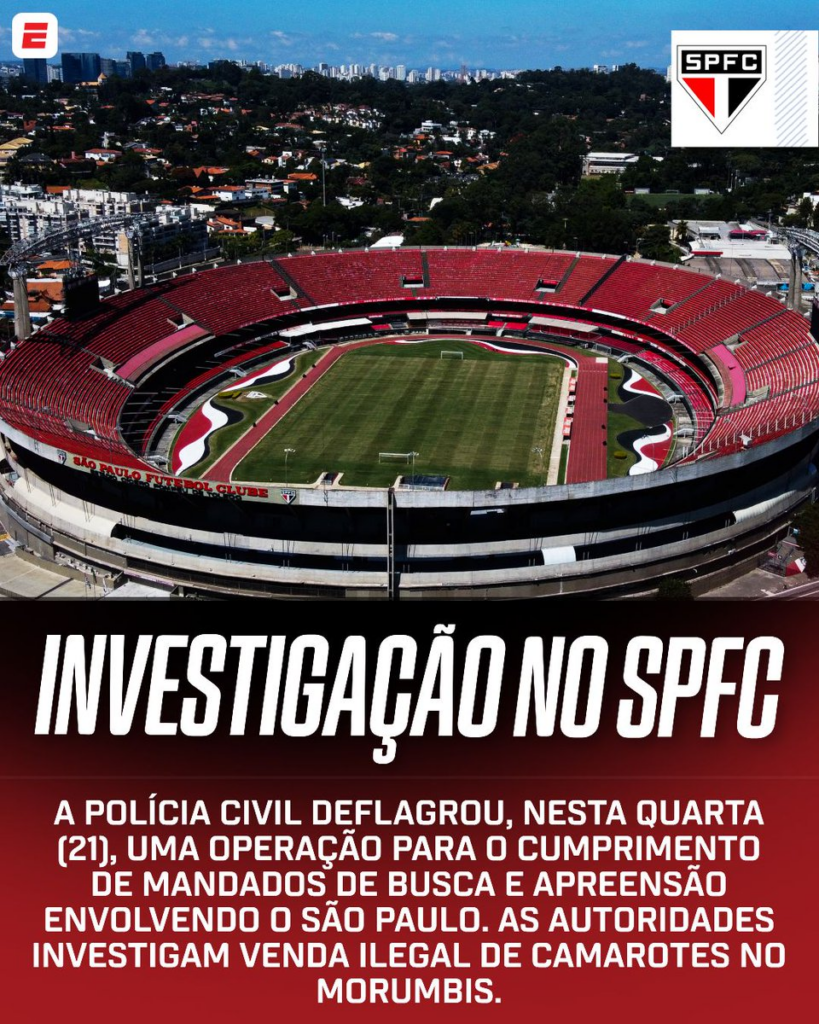 A crise política e administrativa no São Paulo ganhou um novo e explosivo capítulo na manhã desta quarta-feira (21). A Polícia Civil cumpriu mandados de busca e apreensão em residências ligadas a três pessoas investigadas por participação em um suposto esquema de venda ilegal de camarotes do estádio Morumbis.