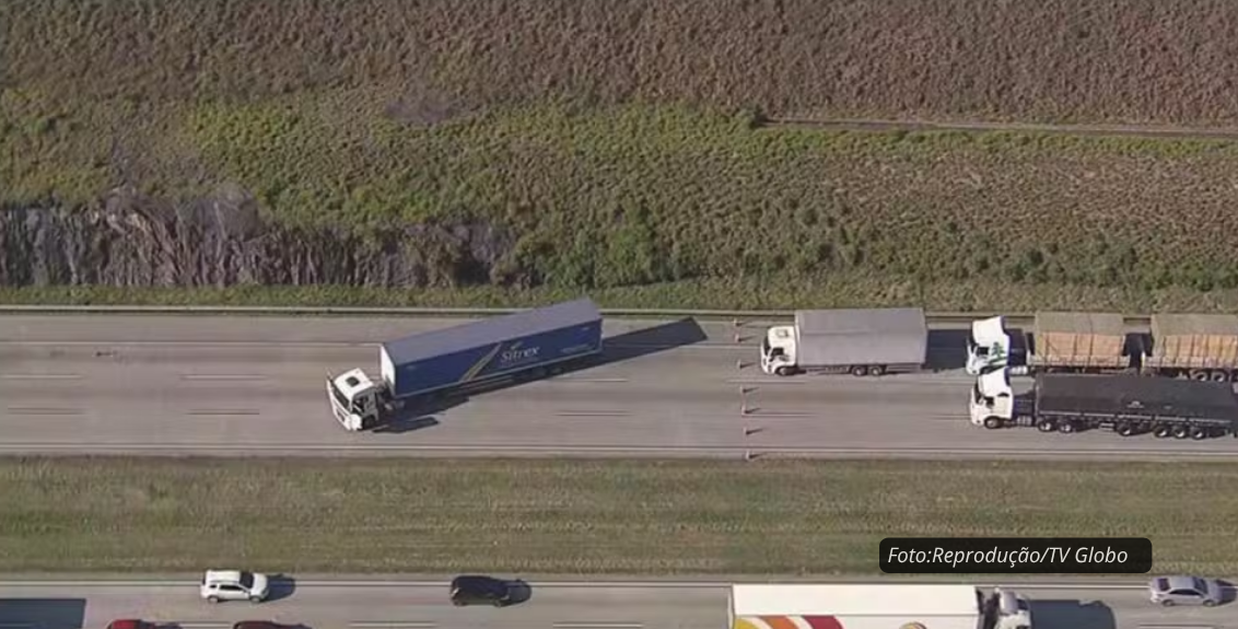 O motorista, que apresentava sinais de forte abalo emocional, afirmou ter sido vítima de um assalto e relatou que criminosos o obrigaram a deixar o caminhão no meio da via. Ele foi socorrido e levado para um hospital da região, sem ferimentos.