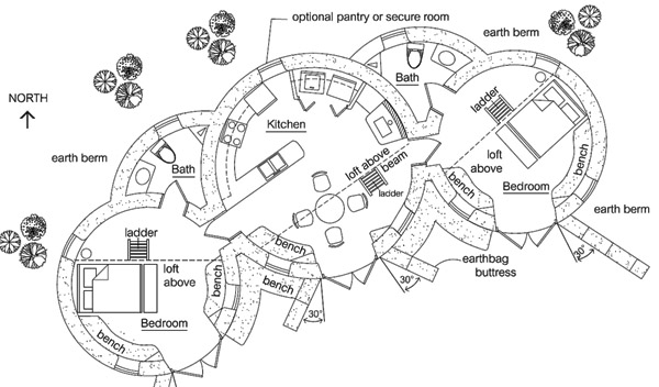 O sistema construtivo depende da repetição contínua desse processo. Os sacos de terra compactados formam paredes espessas que trabalham principalmente por compressão — um princípio estrutural semelhante ao de construções antigas feitas com adobe ou taipa.