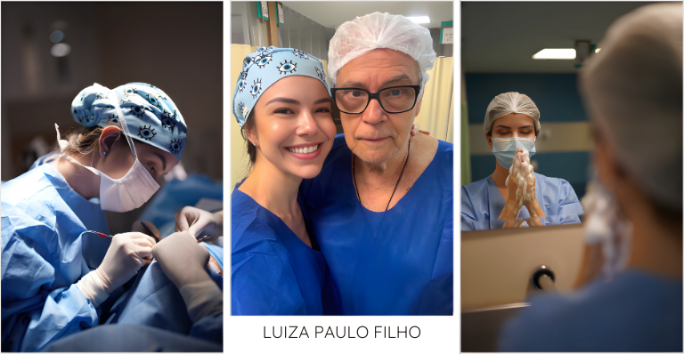 Durante sua residência médica, Luiza se deparou com uma técnica de cirurgia de pterígio – a técnica do retalho – a qual anos depois, lendo uma revista científica produzida pelo seu avô, descobriu ter sido desenvolvida por ele próprio. “Foi emocionante descobrir essa conexão durante minha formação”, compartilha. Seu pai, Rubem Paulo Filho, também trilhou uma trajetória sólida, sendo referência em cirurgia ocular e transmitindo os valores de excelência que norteiam a atuação de Luiza.