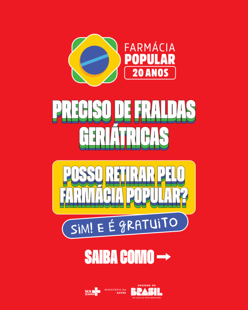O programa Farmácia Popular, do governo federal, oferece fraldas geriátricas gratuitas para pessoas com diagnóstico de incontinência urinária. O objetivo é ampliar o acesso a itens essenciais de saúde e garantir mais dignidade e qualidade de vida a idosos e pacientes com limitações físicas.