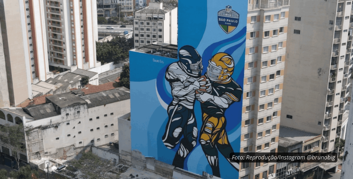 A administração de um prédio localizado na Avenida São João, no Centro de São Paulo, foi multada pela Prefeitura em R$ 260 mil por manter um grafite publicitário da NFL em sua lateral. A arte, criada em 2024 para divulgar o primeiro jogo da liga americana de futebol no Brasil, ultrapassou o prazo legal de exibição permitido pela Lei Cidade Limpa.