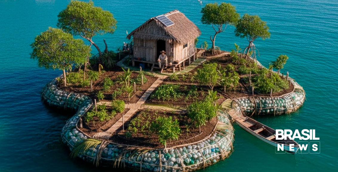 Um projeto inusitado e sustentável tem ganhado destaque ao redor do mundo. O ambientalista Richart Sowa construiu uma ilha flutuante utilizando mais de 150 mil garrafas PET recicladas, transformando resíduos plásticos em uma estrutura habitável no mar.