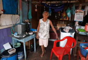 “A mulher está com disposição”, disse uma das pessoas que registrou a cena.