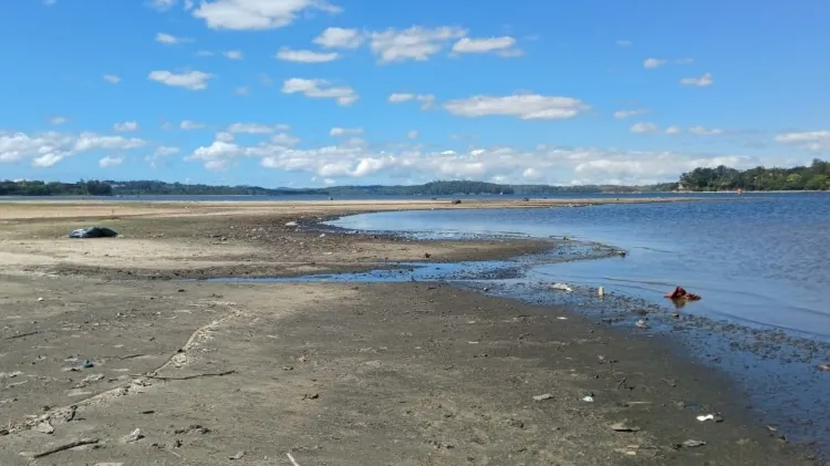 22.out.2025 – Crise hídrica: Represa Guarapiranga, na zona sul de São Paulo, que também abrange partes dos municípios de Itapecerica da Serra e Embu-Guaçu