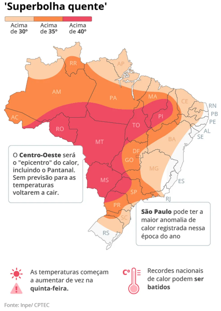 Os meteorologistas explicam que o calor persistente está associado à atuação de sistemas de alta pressão atmosférica, que reduzem a formação de nuvens e dificultam a chegada de frentes frias. Apesar do tempo mais seco em várias regiões, não está descartada a ocorrência de temporais isolados, com risco de alagamentos e transtornos pontuais.
