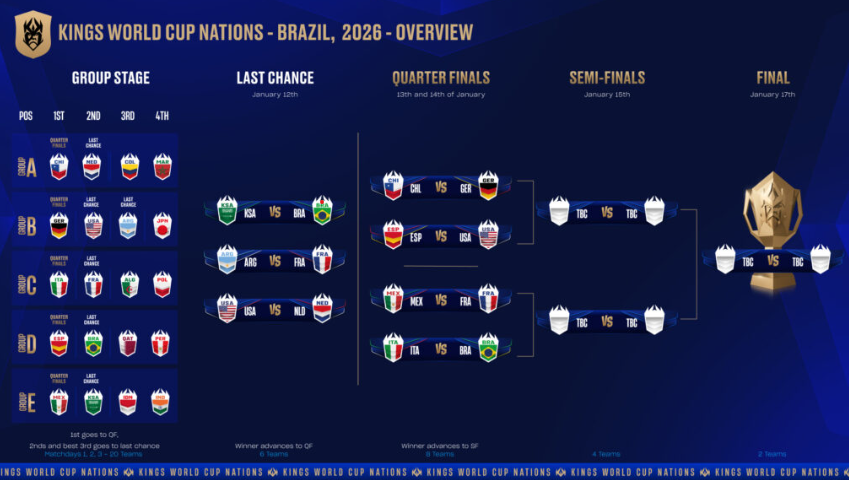 A Kings World Cup Nations 2026, a “Copa do Mundo” do futebol 7 no estilo Kings League, acelera o coração dos torcedores com o início das quartas de final a partir desta terça-feira (13). Após a fase de grupos e a repescagem, as oito seleções sobreviventes entram no mata-mata em busca de vaga nas semifinais rumo à grande final, marcada para o dia 17 de janeiro, no Allianz Parque, em São Paulo.