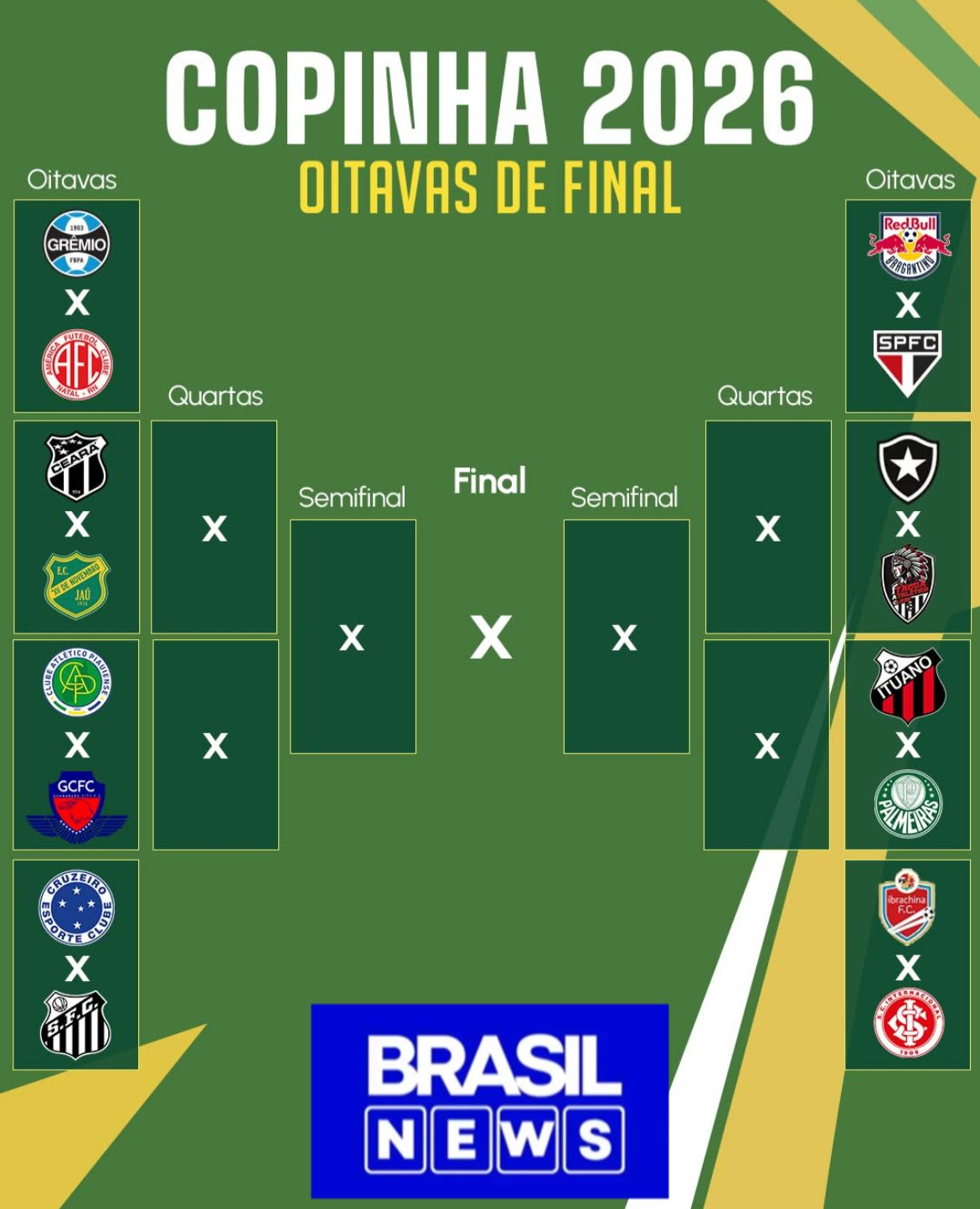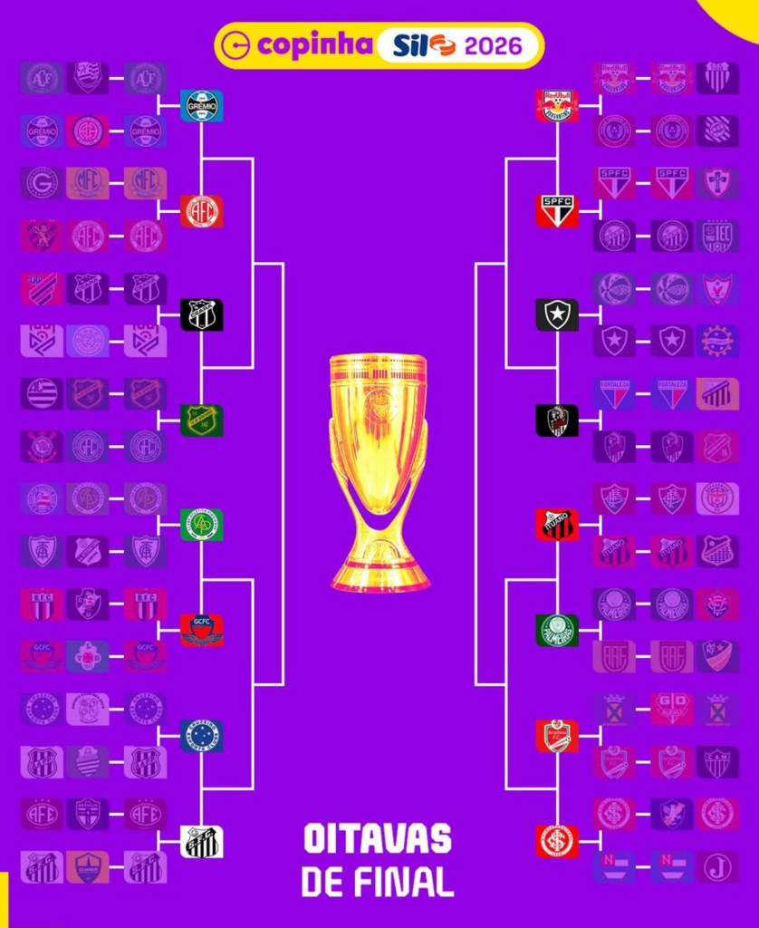 Na fase de mata-mata, os confrontos já confirmados reúnem clubes tradicionais e representativos do futebol nacional. Entre as partidas programadas, estão confrontos como Grêmio x América-RN, Ceará x XV de Jaú, Atlético-PI x Guanabara City-GO e Cruzeiro x Santos, entre outros duelos que prometem fortes emoções para os torcedores.