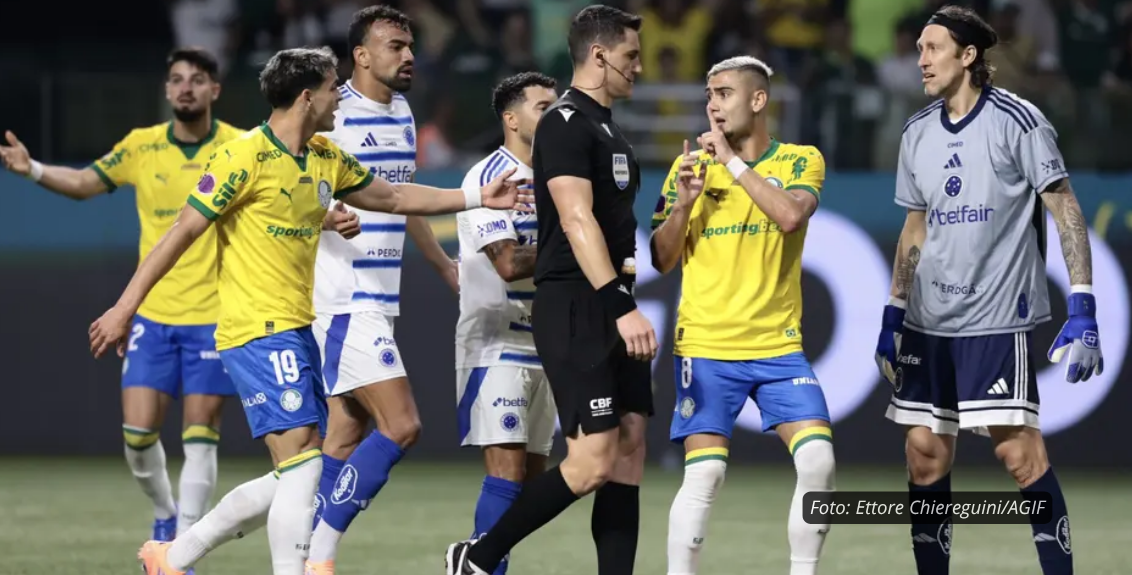 Palmeiras empata com Cruzeiro em jogo tenso e mantém liderança sob críticas à arbitragem.
