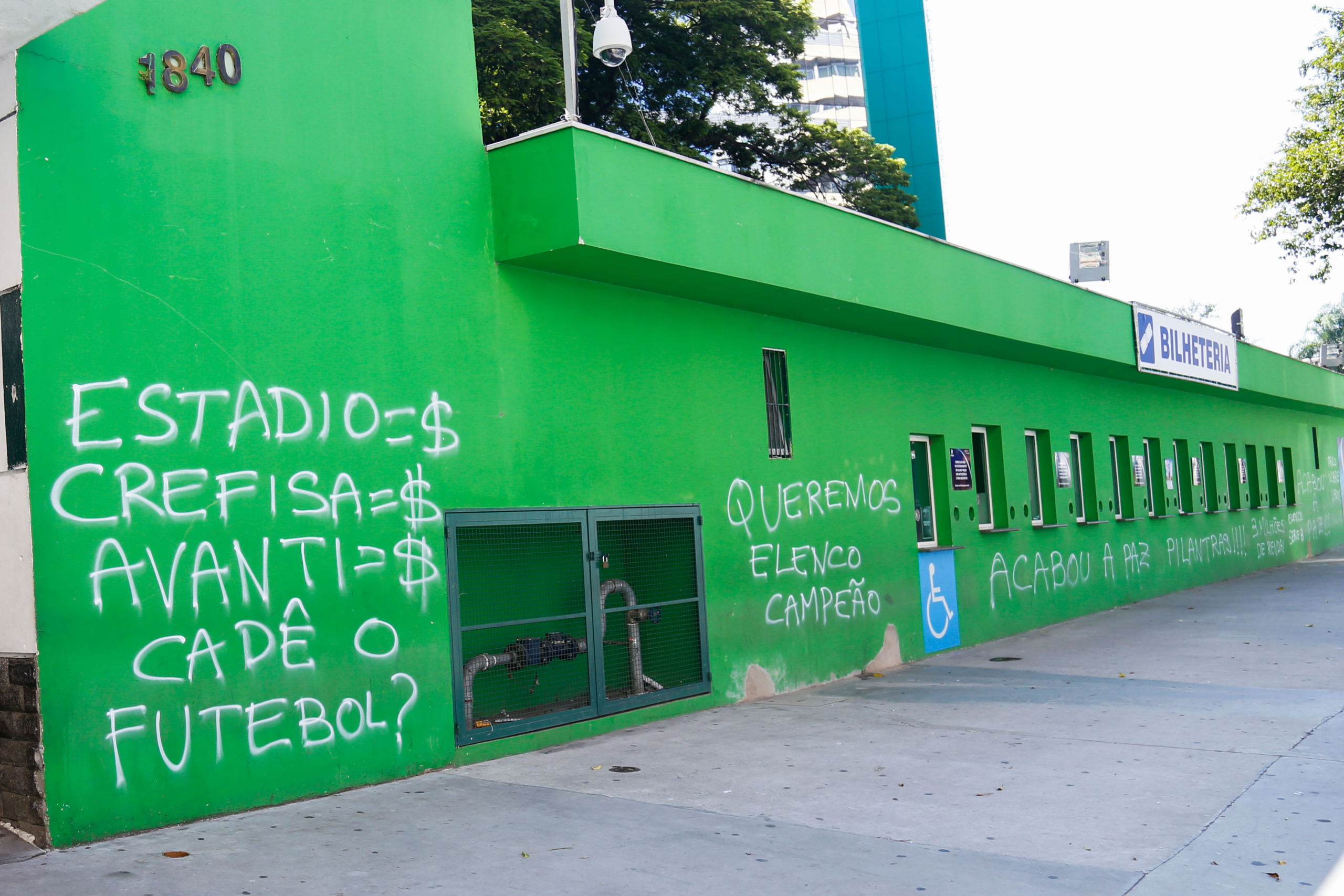 A goleada sofrida pelo Palmeiras por 4 a 0 diante do Novorizontino, pela quarta rodada do Campeonato Paulista, desencadeou protestos durante a madrugada, com pichações nos muros da sede alviverde e nas bilheterias do Allianz Parque.