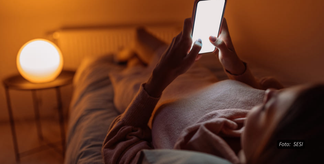 A exposição à luz azul emitida por celulares, tablets e televisores antes de dormir pode atrasar a produção de melatonina, o hormônio responsável por regular o sono. Estudos apontam que o hábito de usar telas na cama reduz o tempo de descanso e compromete a qualidade do sono, elevando o risco de insônia, ansiedade e fadiga mental.