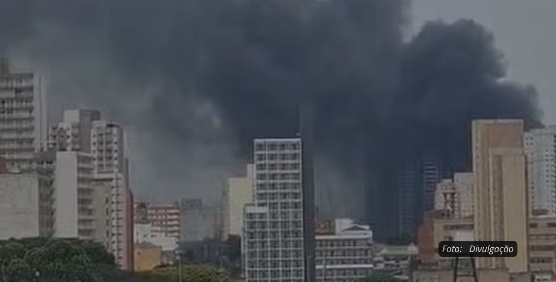 Incêndio de grande porte atinge galpão no Brás e deixa duas mulheres intoxicadas por fumaça.