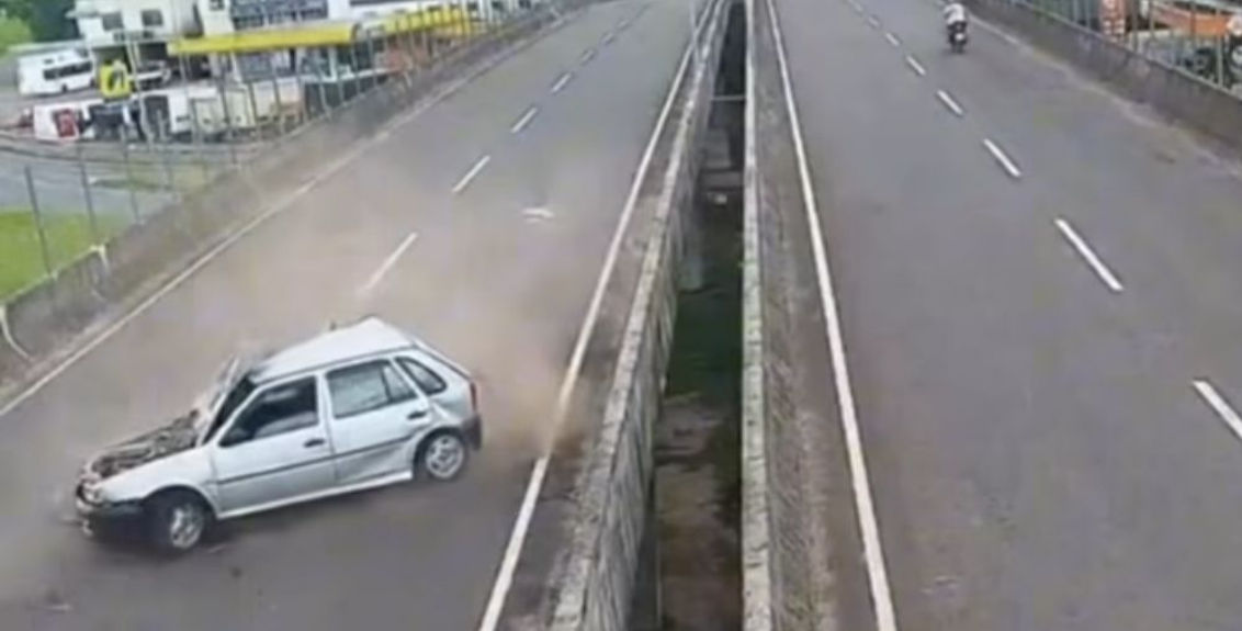 Capô aberto, tragédia anunciada: motorista morre ao cair de viaduto no RS.
