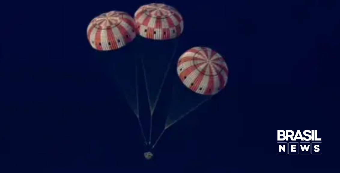 Missão Artemis II retorna à Terra após viagem histórica à Lua e quebra recorde humano no espaço.